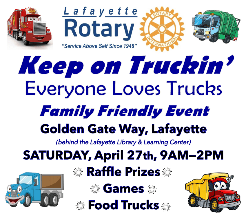 Support local community projects through the Rotary Club of Lafayette, by participating in our “Keep on Truckin” community event!
